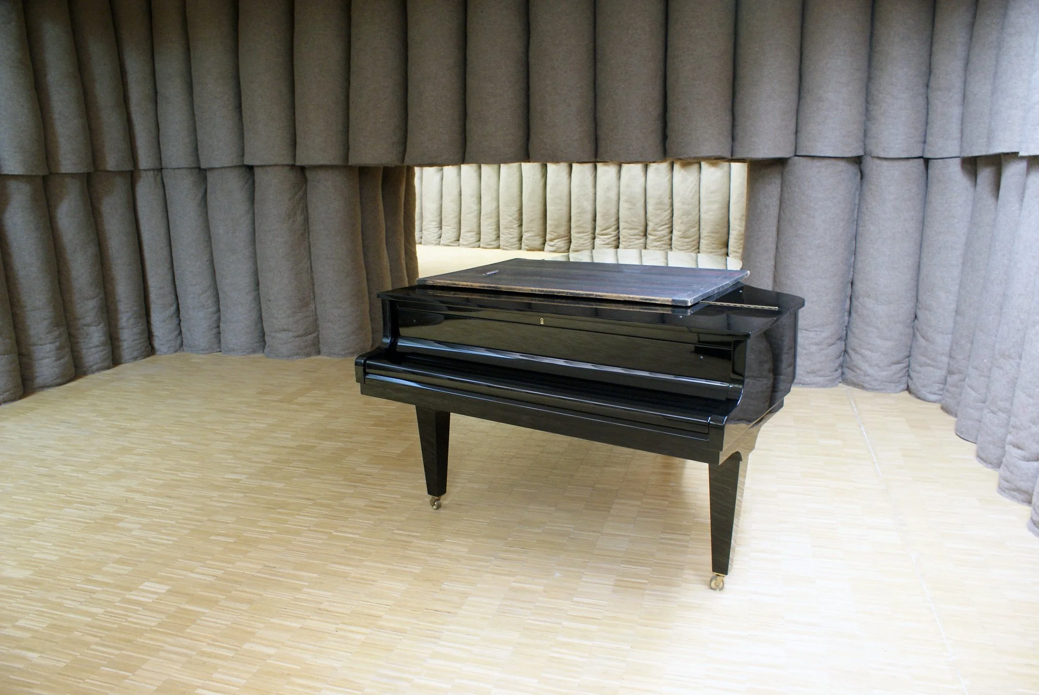 Avec l’idée d’un revêtement feutré des parois de la loge, Pascal Grasso s’inscrit en référence à l’œuvre de l’artiste conceptuel Joseph Beuys, intitulée Plight, réalisée en 1985 pour la première fois. Cette installation, visible aujourd’hui au Centre Pompidou à Paris, est composée de murs recouverts de rouleaux de feutre. Par l’effet de cette matière, température et sonorité s’altèrent en pénétrant dans la pièce, on entend presque battre son cœur…